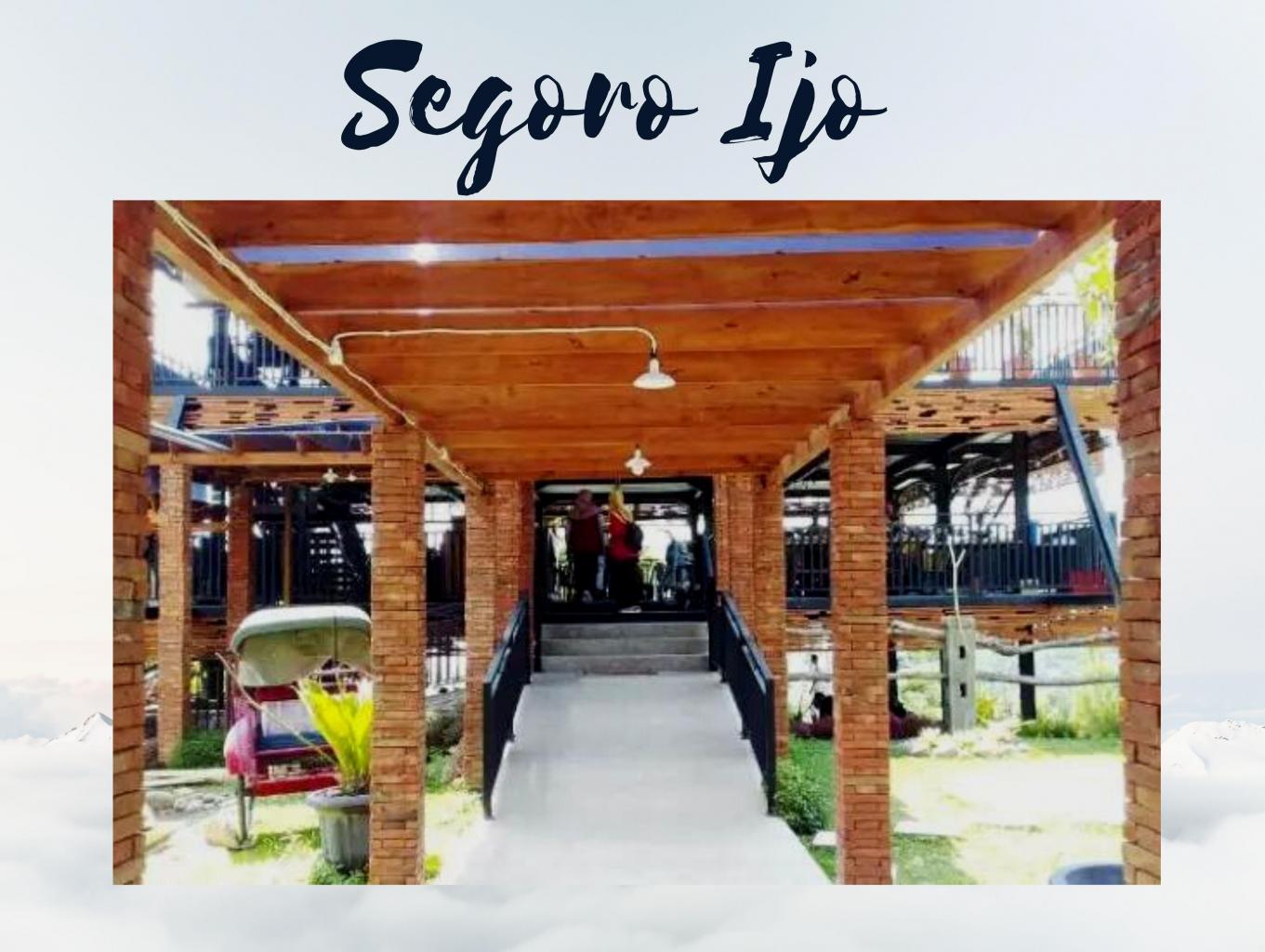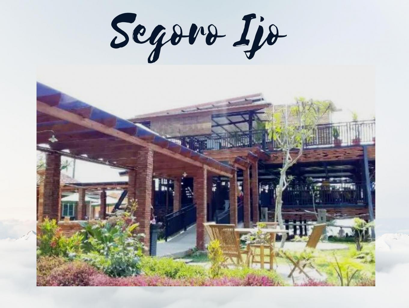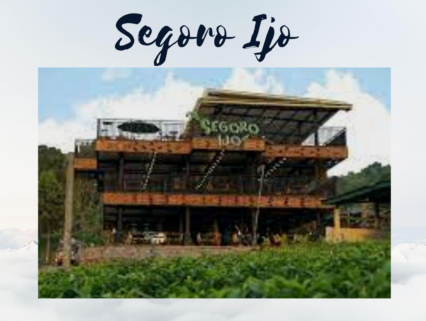 Segoro Ijo merupakan restoran keluarga yang baru dibuka pada Juni 2019. Berada di kawasan wisata Kebun Teh Kemuning, tempat makan ini bisa jadi alternatif bersantap bersama keluarga, baik untuk sarapan, makan siang, maupun makan malam. Suasananya juga oke untuk sekedar ngumpul bareng.